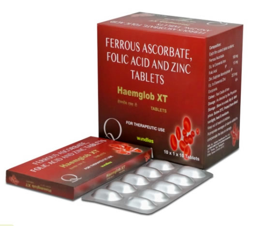 Haemglob XT Tablets (10’s) | Ferrous Ascorbate (Elemental Iron 100mg) + Folic Acid 1.5mg + Zinc Sulphate (Zinc 22.5mg) | For Treatment of Anaemia